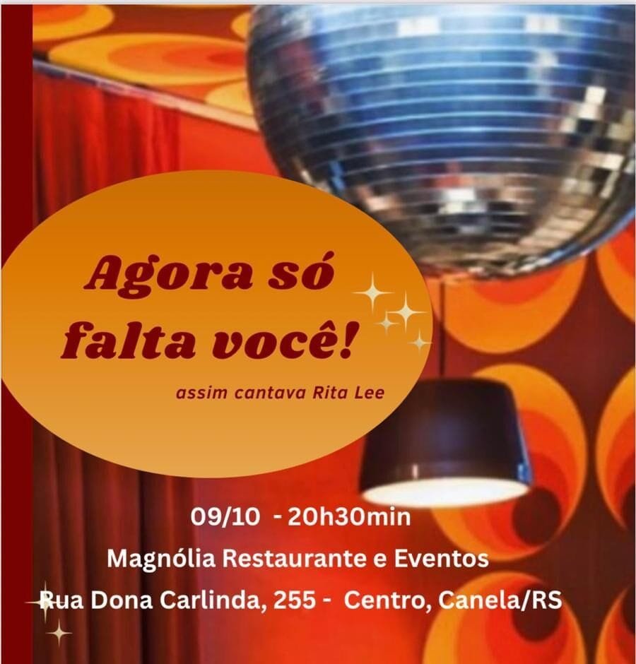 🗓 09 de outubro | ⏰ 20h30 às 2h | 📍 Magnólia Restaurante, Canela