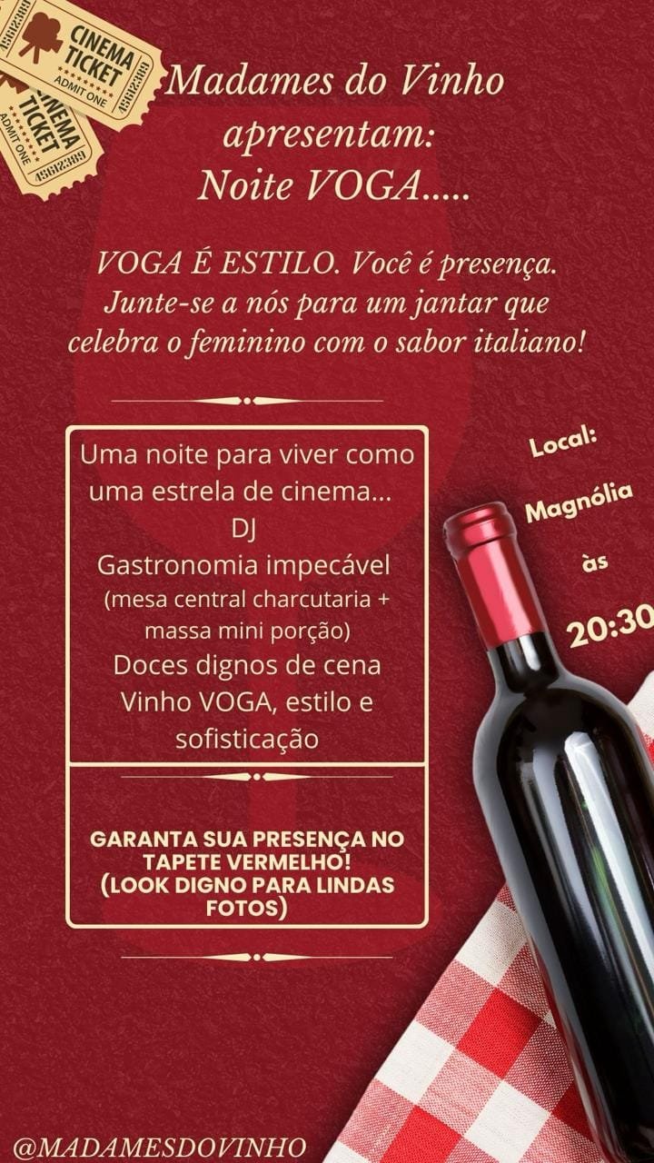VOGA É ESTILO. Você é presença. Junte-se a nós para um jantar que celebra o feminino com o sabor italiano!